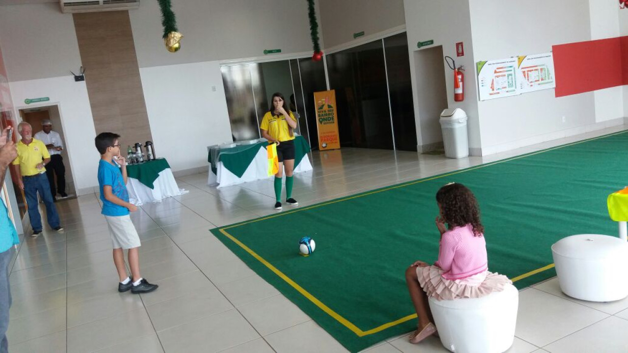 No último sábado (3/12) o grupo empreendedor Eldorado Parque, composto pelas empresas CMO, Dinâmica Engenharia, Engel Engenharia e Tropical Urbanismo, realizaram mais uma edição do Chute a Gol Eldorado Parque. O evento proporcionou ao cliente que conheceu a central de decorados a oportunidade de 1 chute a gol para concorrer a vários prêmios que foram de bóias e baldinhos de praia a lavadoras e fogões cooktops. Na ocasião, passaram mais de cinquenta visitantes pelo stand e além da premiação, puderam degustaram um delicioso e especial café da manhã no local.